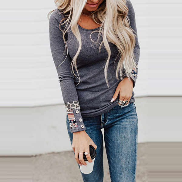 This t-shirt is crafted from soft and breathable fabric,with long sleeve and round neck design,which can ensure you a comfortable day. Moreover,the printed spliced details at the cuff part will make this piece look more stylish. All-match design can offer you different matching opportunities.