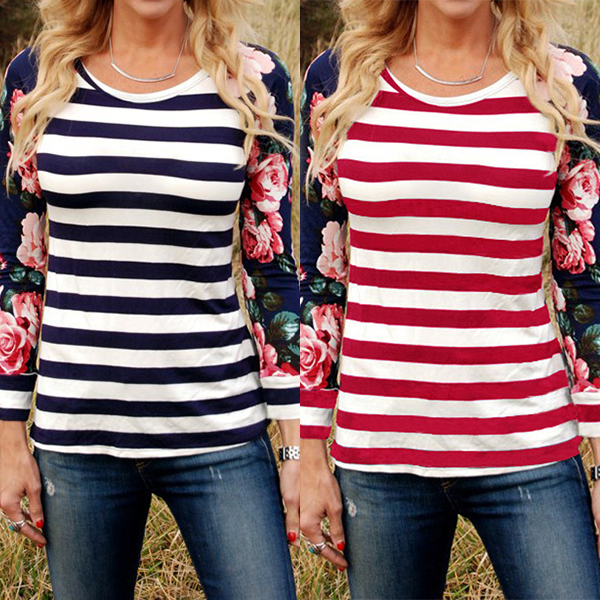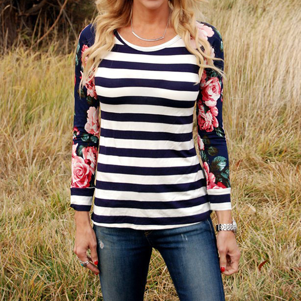 Simple doesn't stand for boring and dull,take this t-shirt for example. Its printed spliced and striped design make it look