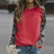 Fashion Printed Spliced Long Sleeve Round Neck T-shirt