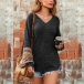 Fashion Printed Spliced Long Sleeve V-neck T-shirt
