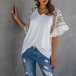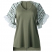 This t-shirt is a good chance to boost your daily style. The printed spliced lotus sleeve design is the highlight,which make this piece look so chic and attractive. Meanwhile,its soft fabric and loose silhouette design can offer you a comfortable day. We suggest you matching with your favourite pants to achieve for a fashionable style.