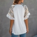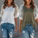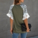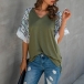 Fashion Printed Spliced Lotus Sleeve V-neck T-shirt