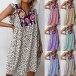 Fashion Printed Spliced V-neck Loose Leopard Dress
