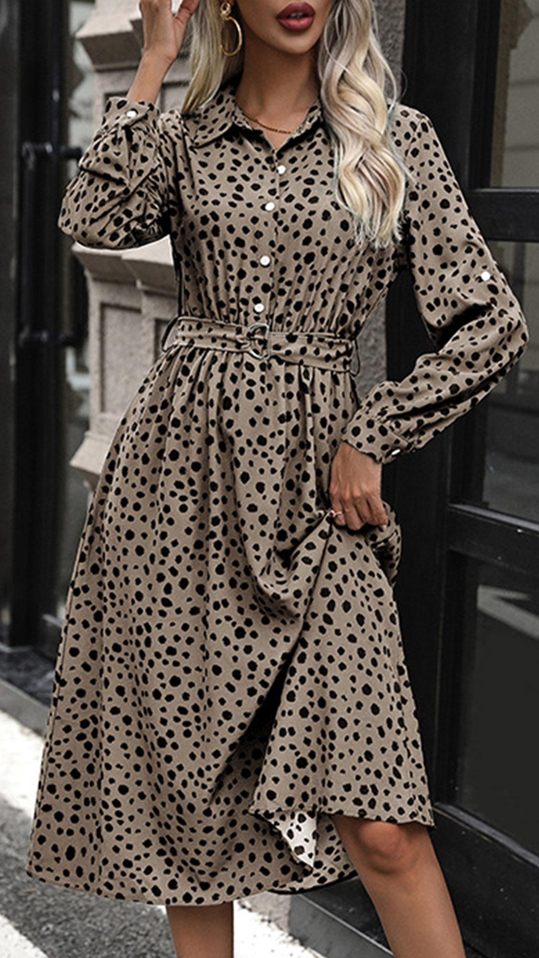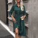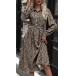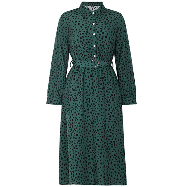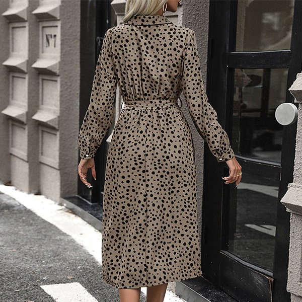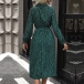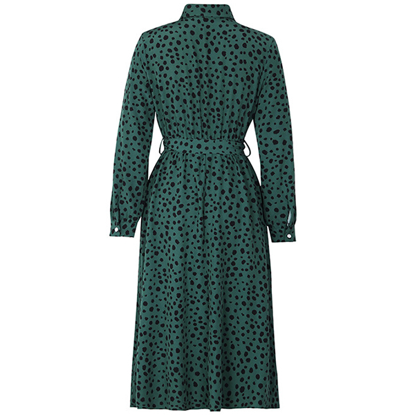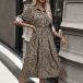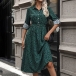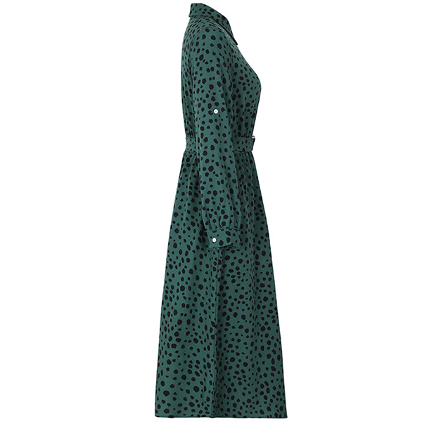 Fashion Printed Stand Collar Tab-sleeve Cinch Waist Midi Dress