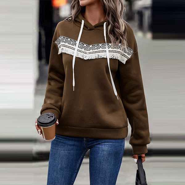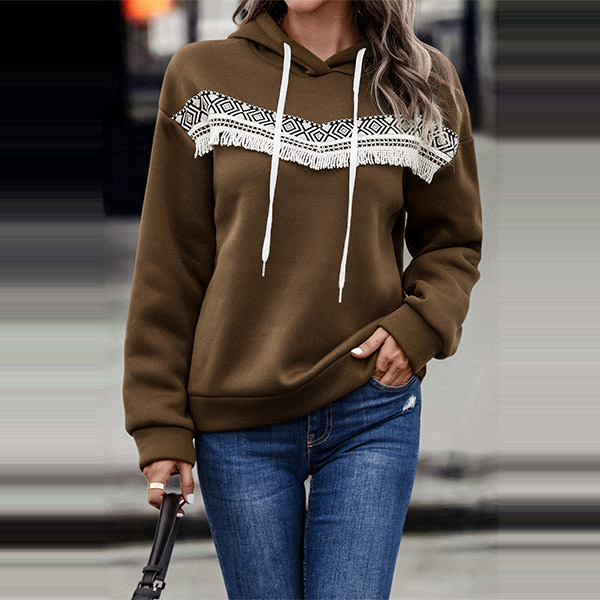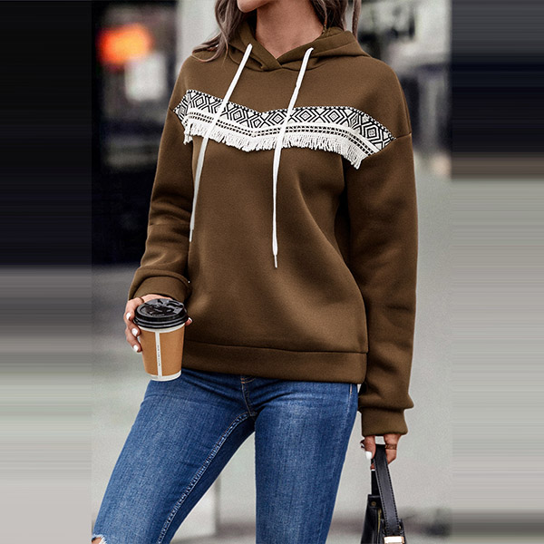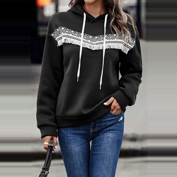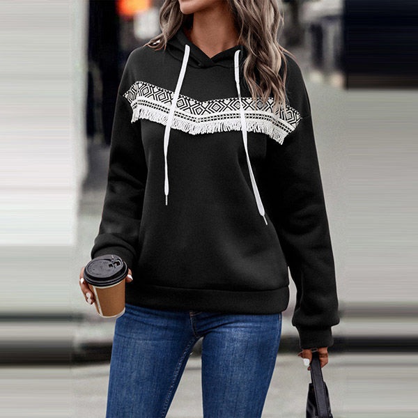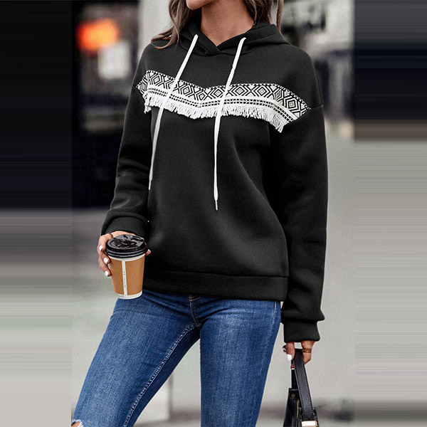 Fashion Printed Tassel Drawstring Hooded Sweatshirt