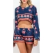 vibrant floral print makes it look so eye-catching. Including a trumpet sleeve round neck crop top and