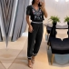 Fashion Printed Two-piece Set Consist of V-neck Shirt and Pants