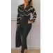 Fashion Printed Two-piece Set Consist of Wave Printed Blouse and Pants