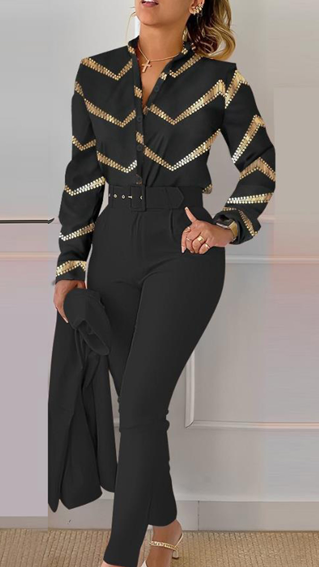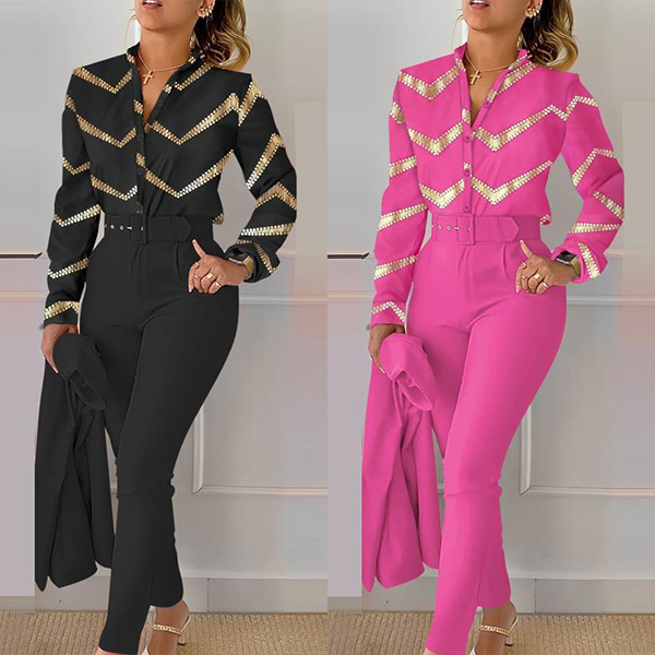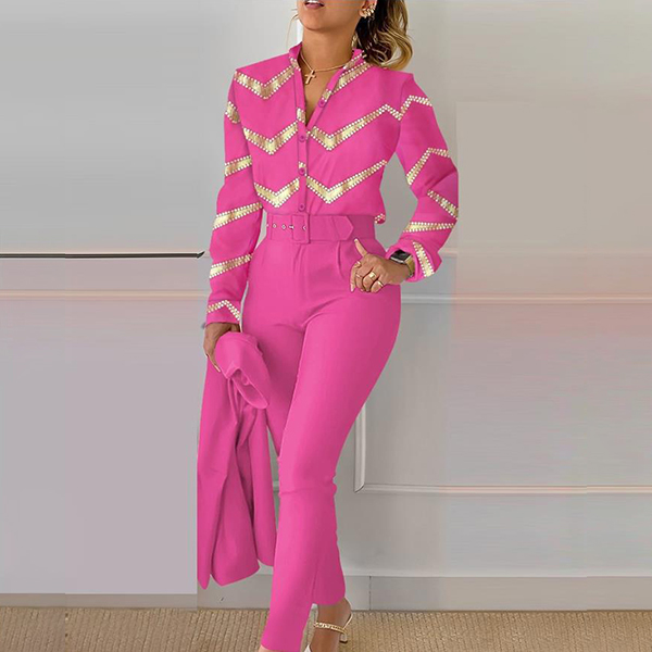 This fashionable two-piece set features a wave printed blouse and matching pants, creating a stylish and coordinated ensemble. This set is perfect for adding a touch of personality and flair to your outfit. Wanna have a try?