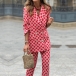 Ensemble chic deux pièces imprimé avec blazer croisé et pantalon droit