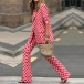 Affichez une allure audacieuse avec cet ensemble chic de costume deux pièces, comprenant un blazer croisé et un pantalon à coupe droite, tous deux ornés d'un imprimé élégant. Parfait pour une tenue professionnelle et tendance, à associer avec des talons et des accessoires modernes.