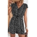 Fashion Printed V-neck Cap Sleeve Romper with Belt