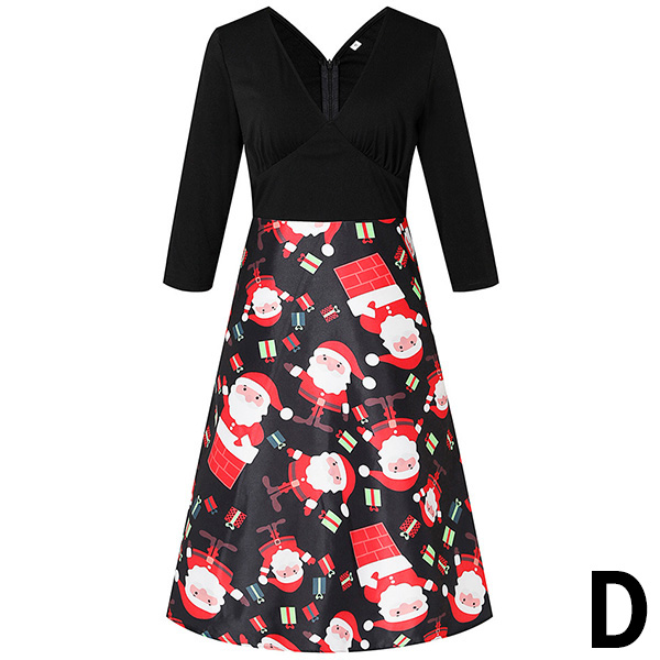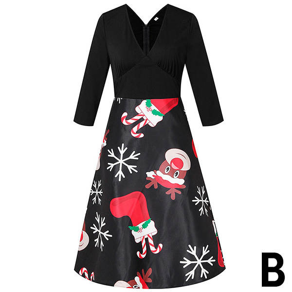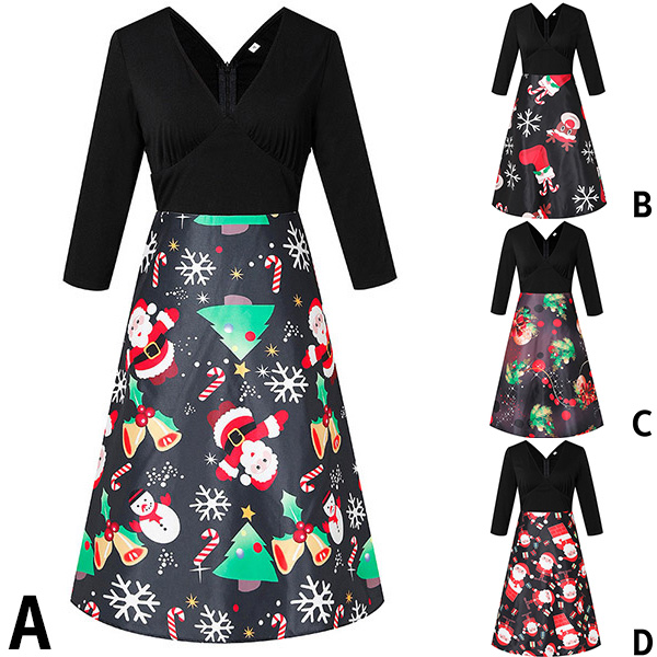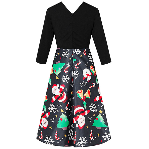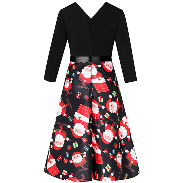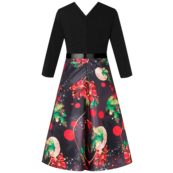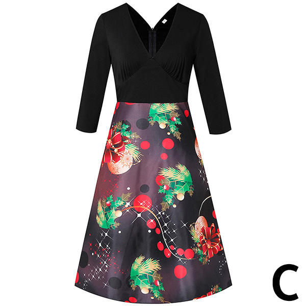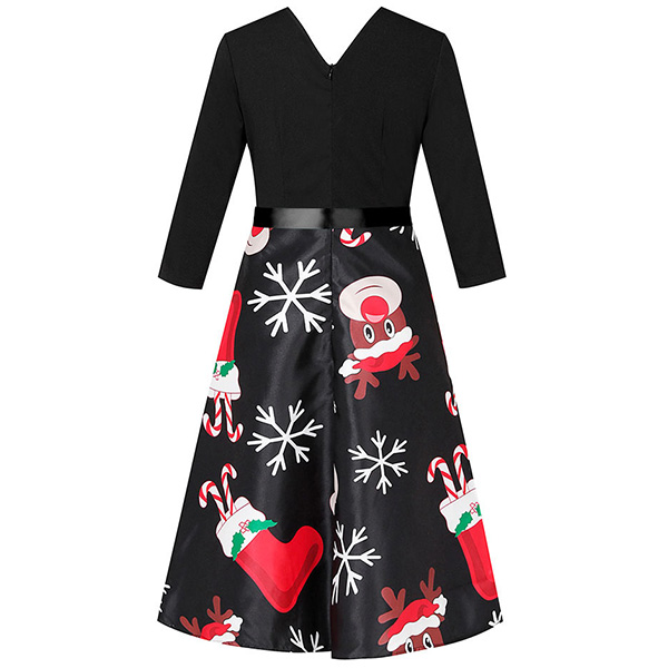 Fashion Printed V-neck Long Sleeve Christmas Dress