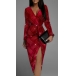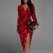 Fashion Printed V-neck Long Sleeve Irregular Hemline Slit Bodycon Dress