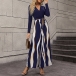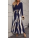 Fashion Printed V-neck Long Sleeve Self-tie Wide-leg Jumpsuit