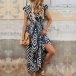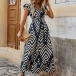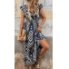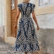 Fashion Printed V-neck Ruffle Cap Sleeve High-rise Maxi Dress