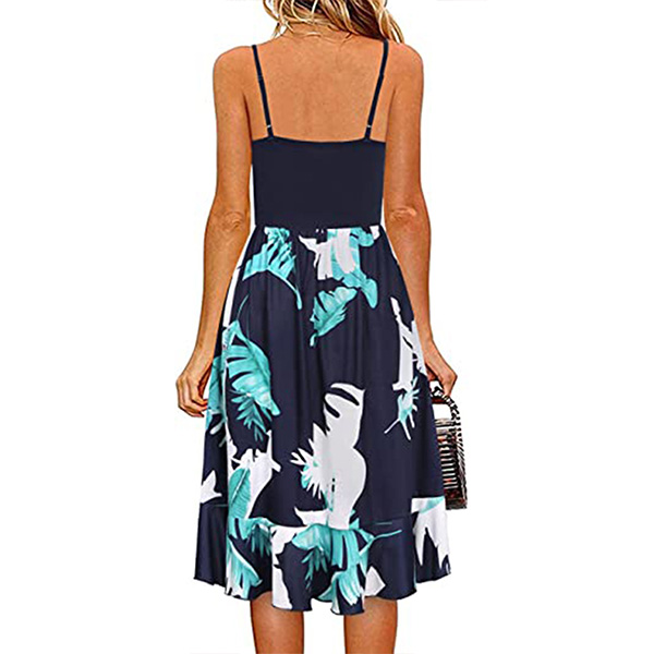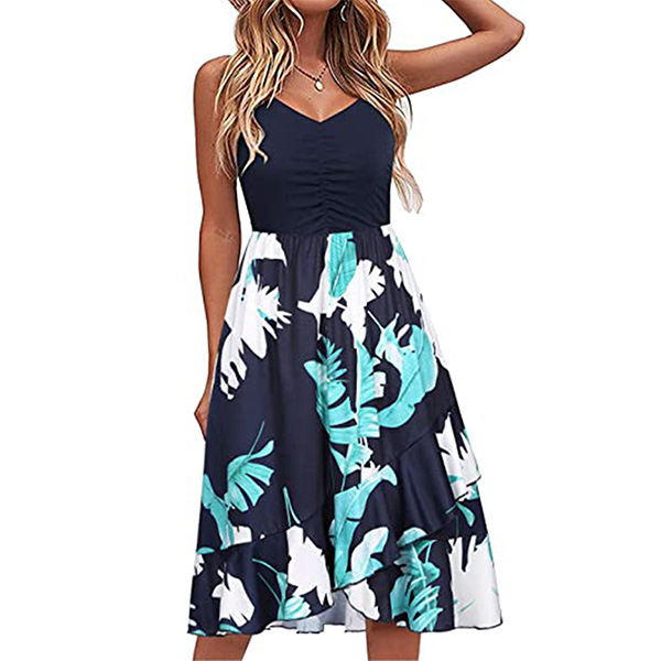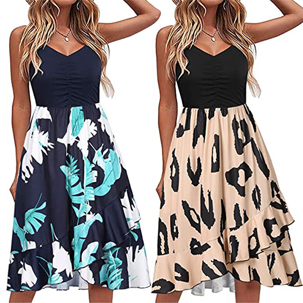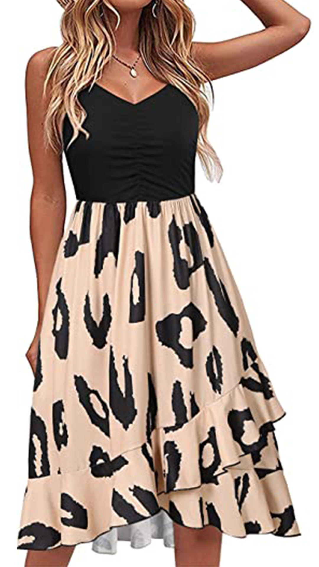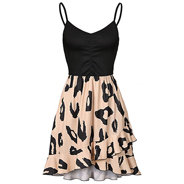 How about this dress? It features a sexy black V-neck bodice and a printed skirt, looks chic and cute! While the ruffled detailing adds a playful and flirty element. Wanna have one?