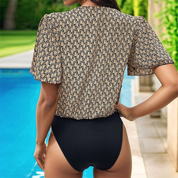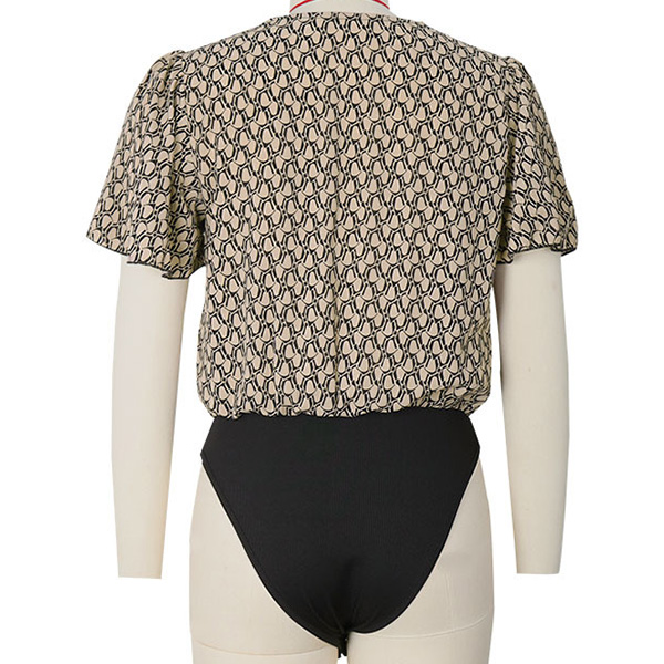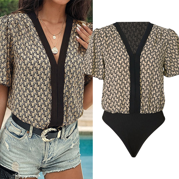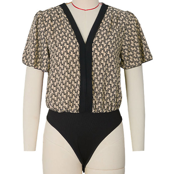 Fashion Printed V-neck Short Sleeve Bodysuit