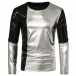 Fashion PU Leather Spliced Long Sleeve Round Neck Men's Sweatshirt