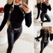 Thanks to the flattering black tone and fit silhouette design,your perfect body-line can have a full display in this wonderful top. Moreover,the PU leather spliced and button details will further enhance its charm. When the days get cold,your wardrobe calls for such a stylish and all-match piece.