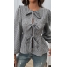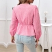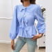Fashion Puff Long Sleeve Front Bowknot Ruffle Hemline Shirt