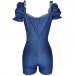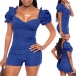 Fashion Puff Sleeve Square Collar Slim Fit Denim Romper