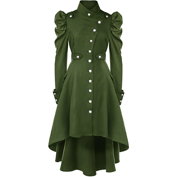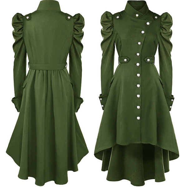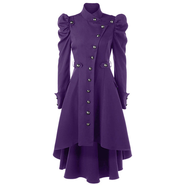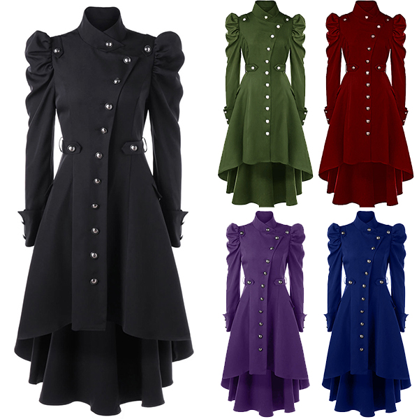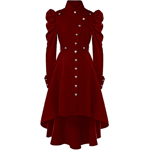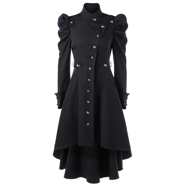 For your special occasions,you can trust in this dress to gain more eyes. Solid color style,its distinctive design details like stand collar,puff sleeve,high-low hem and single-breasted design make this piece look so attractive. Dress it up with your favourite shoes,then you can look stunning and charming enough!