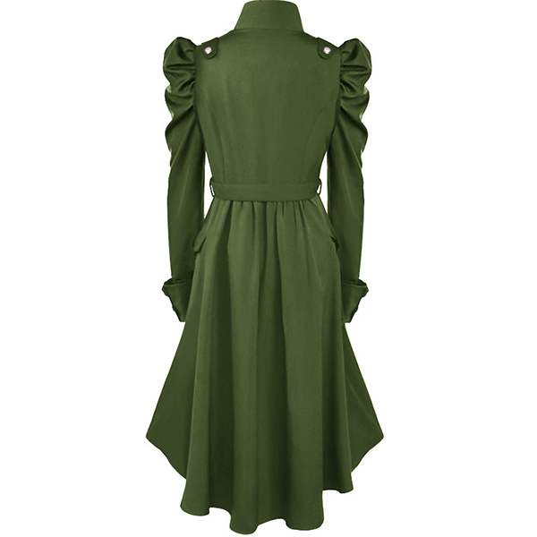 Fashion Puff Sleeve Stand Collar High-low Hem Single-breasted Dress