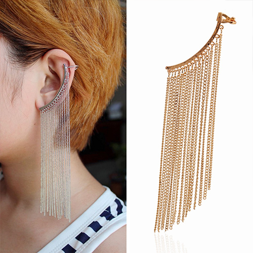The earring is very special and charming. It is decorated with tassel pendant patterns,