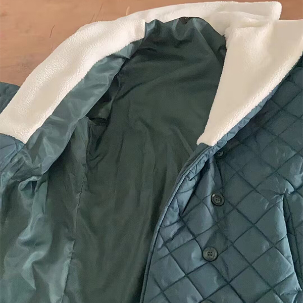 This jacket features a unique quilted design that not only adds an element of style but also provides additional warmth and comfort. The stand collar enhances the overall design while adding extra protection against the cold. Lined with soft plush material, this jacket provides an extra layer of insulation, keeping you cozy even in the harshest weather.