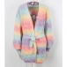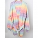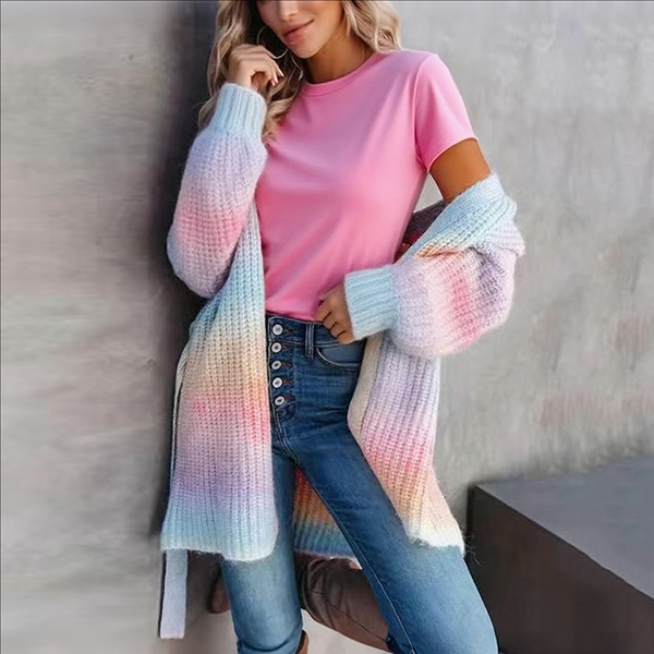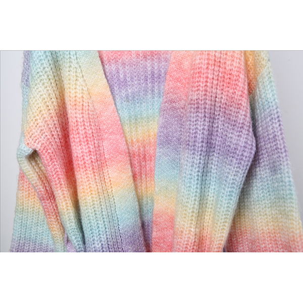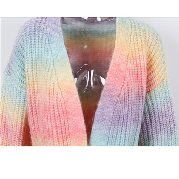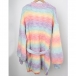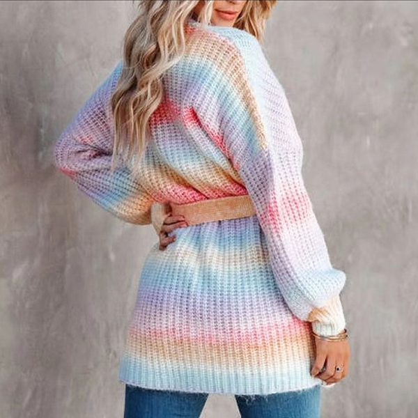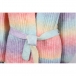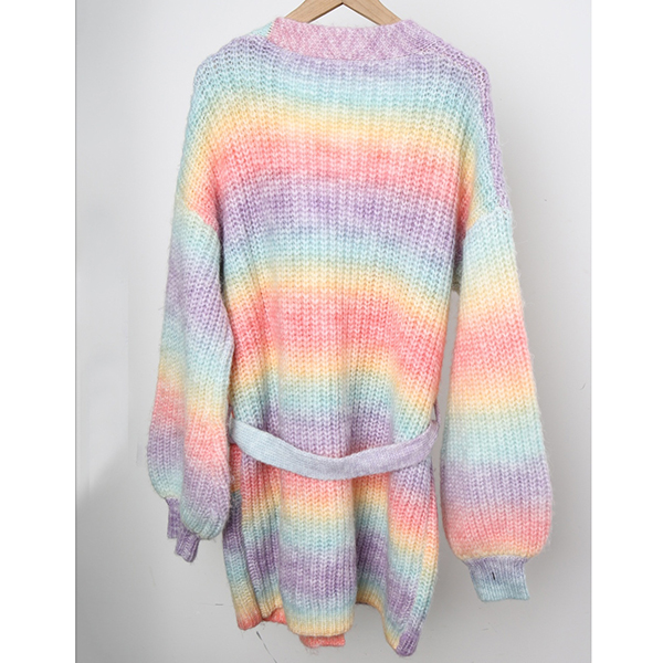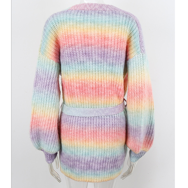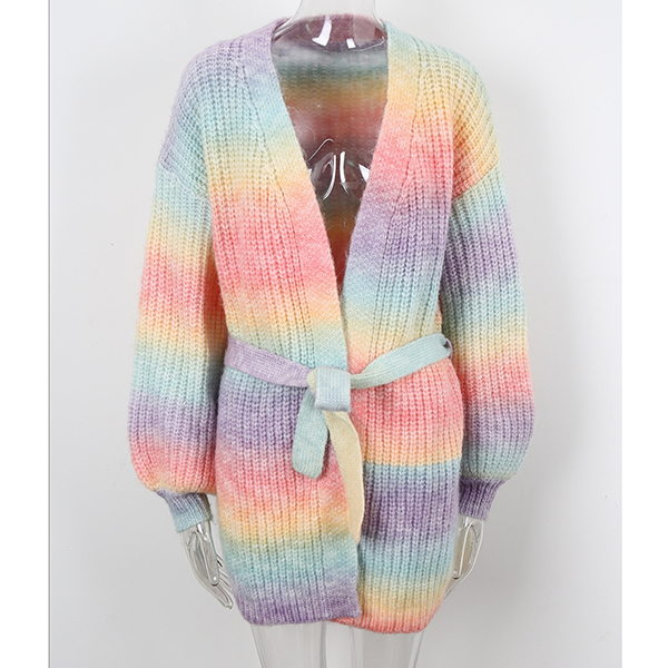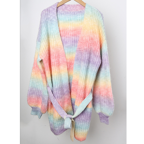 Fashion Rainbow Colorful Batwing Long Sleeve Self-tie Knitted Cardigan