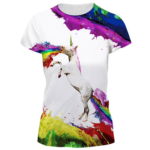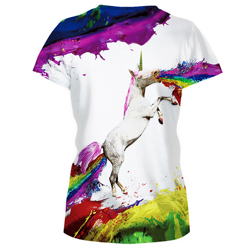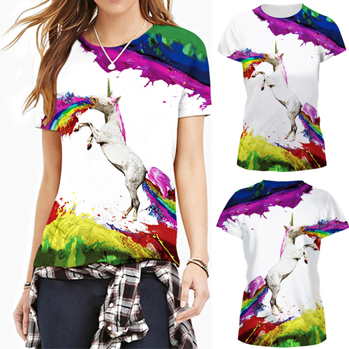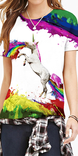 This tops with round neck, short sleeve and rainbow and horse printed design, fashion and distinctive.