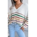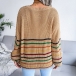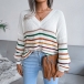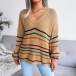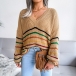 Fashion Rainbow Stripe Spliced Long Sleeve V-neck Loose Sweater