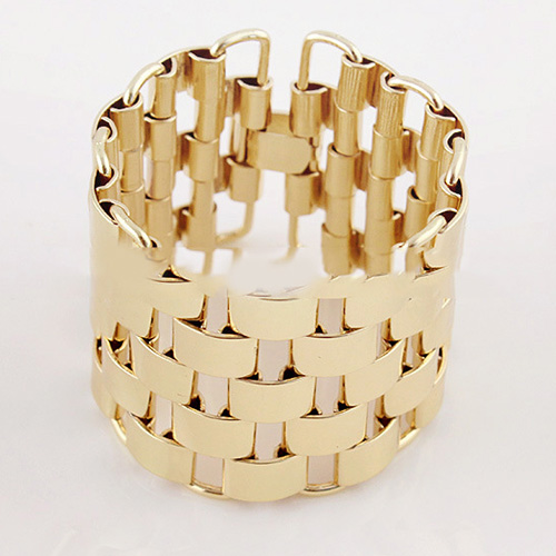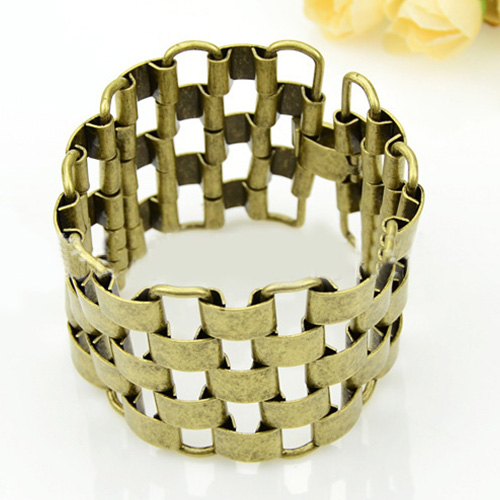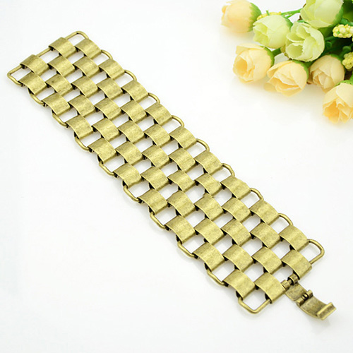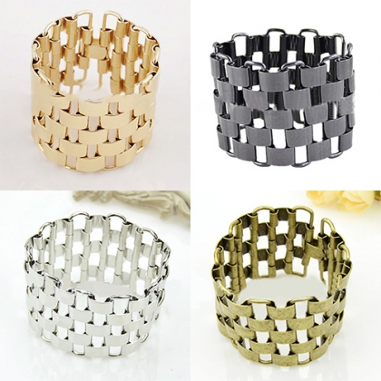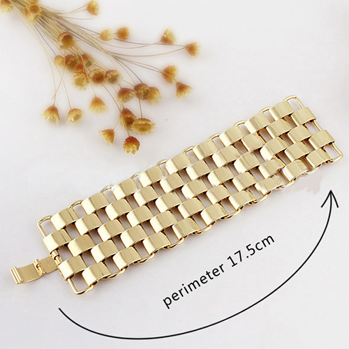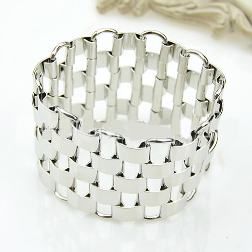 The bracelet features geometric shaped design; it is decorated with hollow out patterns,
