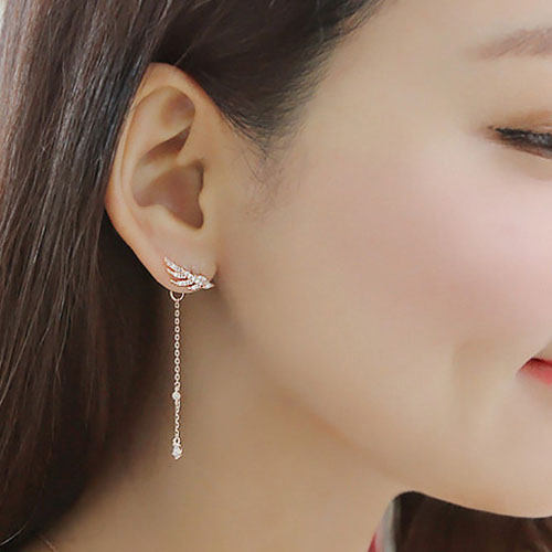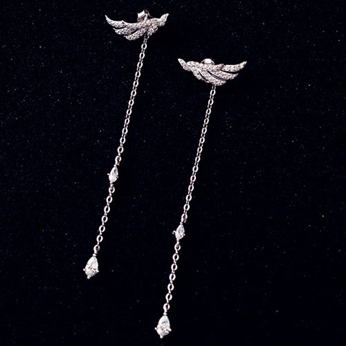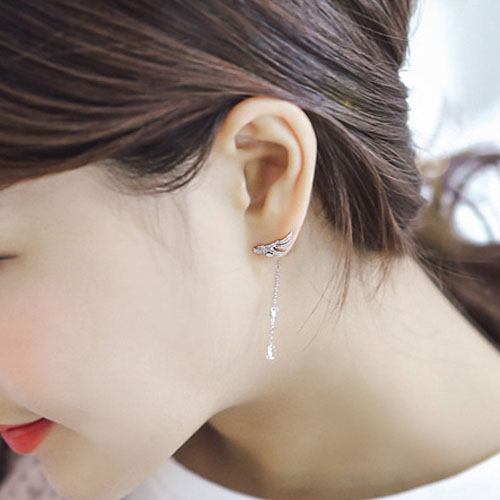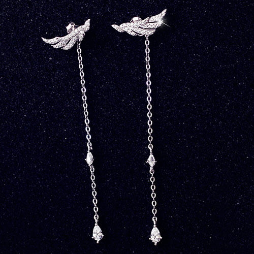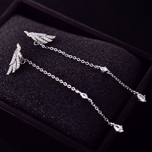 Fashion Rhinestone Angel Wings Tassel Earrings