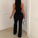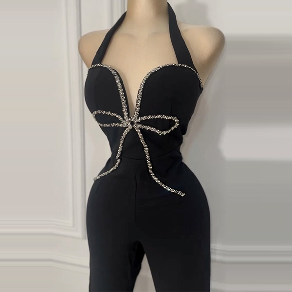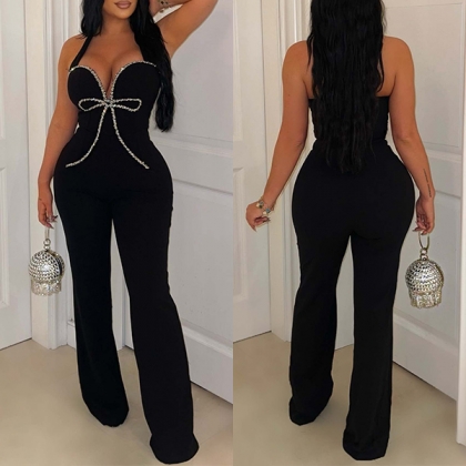 Fashion Rhinestone Bowknot V-neck Straight-cut Jumpsuit