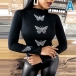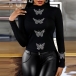 Fashion Rhinestone Butterfly Long Sleeve Mock Neck Slim Fit Top