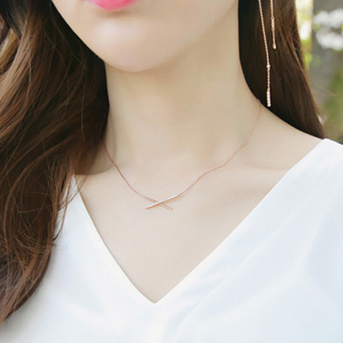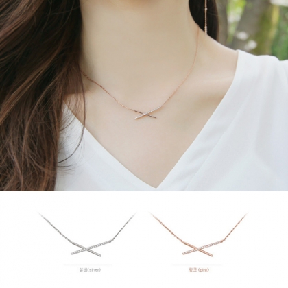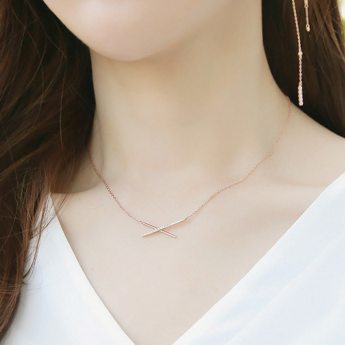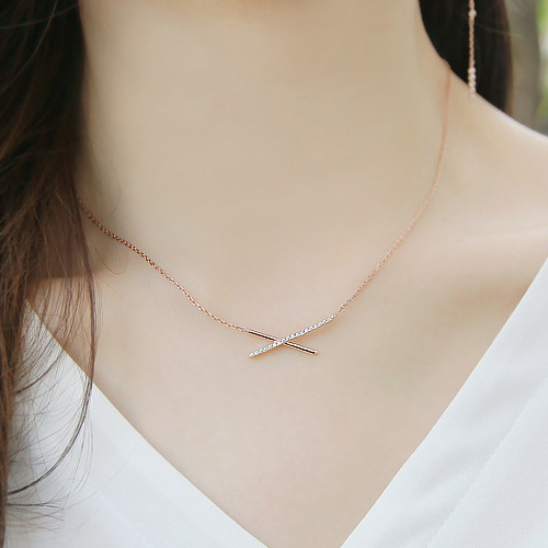 Fashion Rhinestone Cross Pendant All-match Necklace