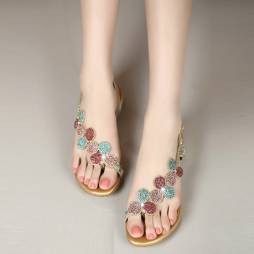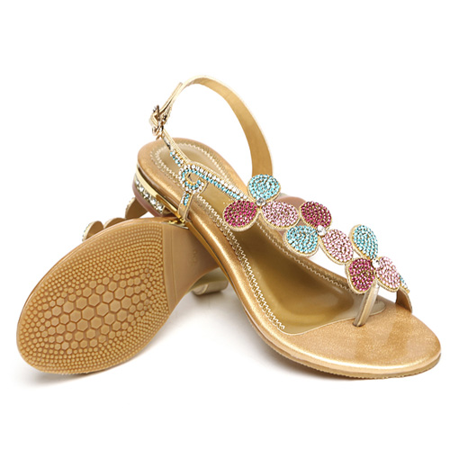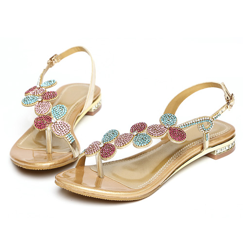 Its rhinestone flowers design makes it look so eye-catching and charming. Flat heel