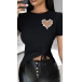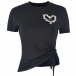 Fashion Rhinestone Heart Shape Cutout Round Neck Short Sleeve Shirt