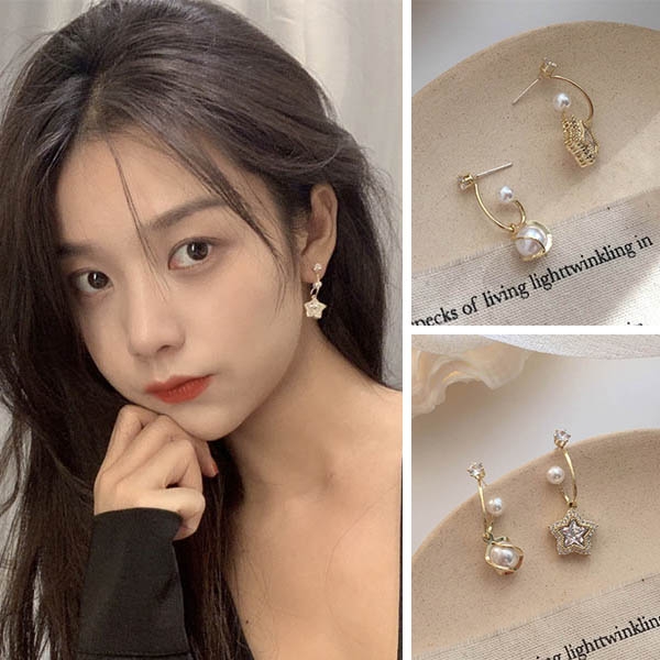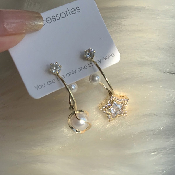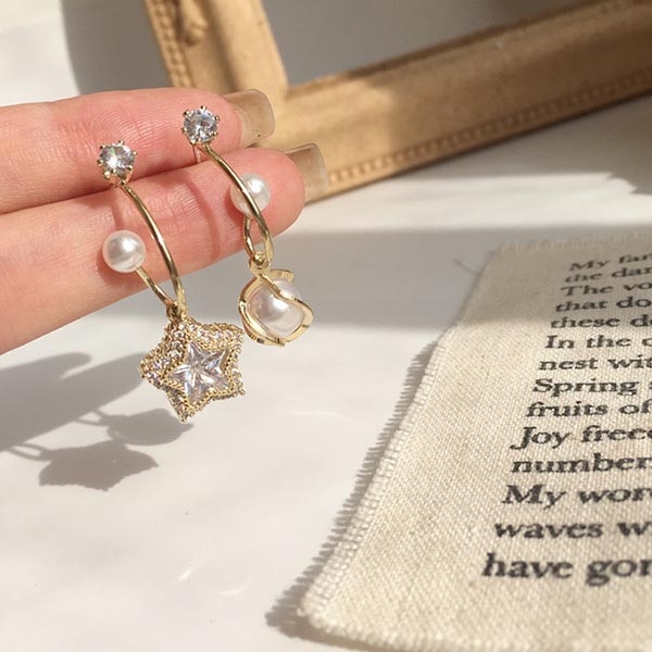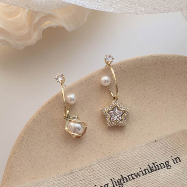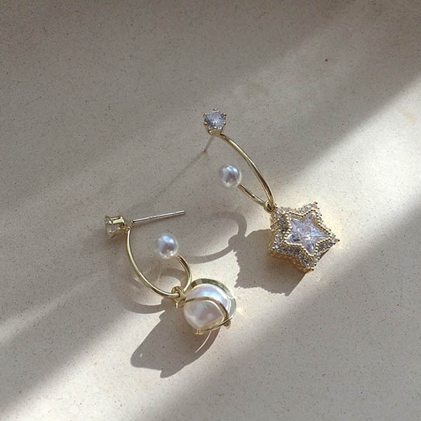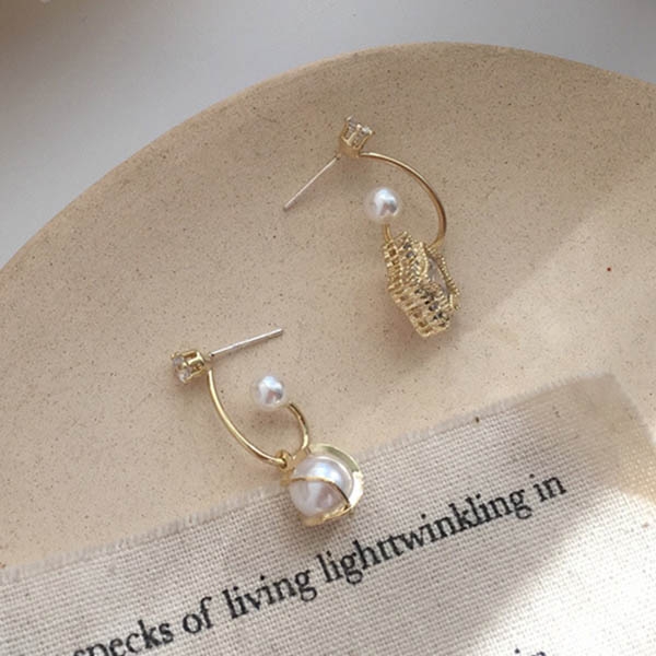 Fashion Rhinestone Imitation Pearl Inlaid Asymmetric Earrings