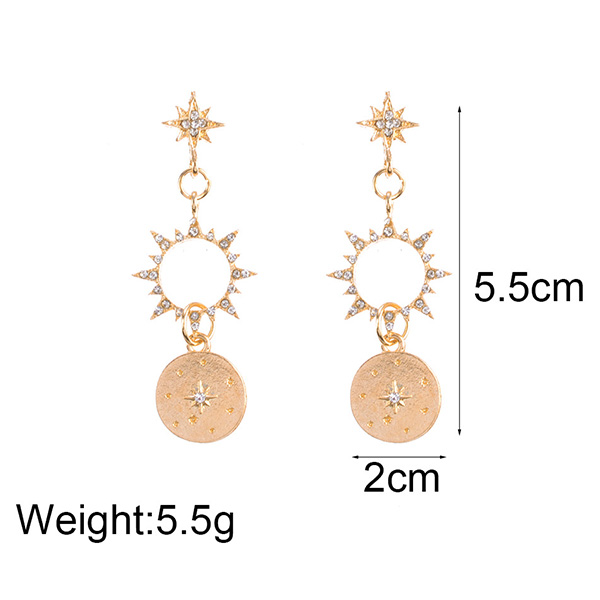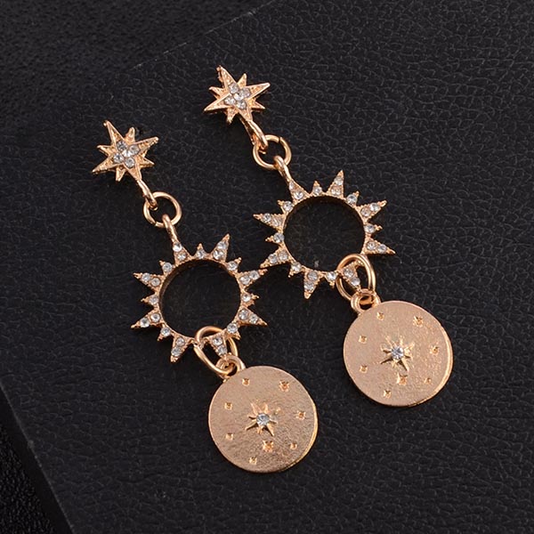 Finish a stylish and charming daily look with the help of this pair of earrings. Hollow out sun shaped design,inlaid with rhinestone details,shinning and attractive. Your charm can have a boost when you wear these earrings.