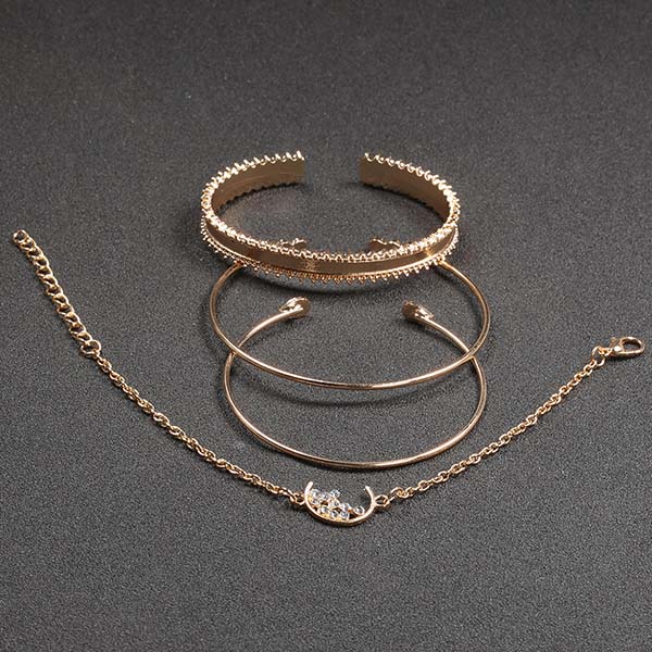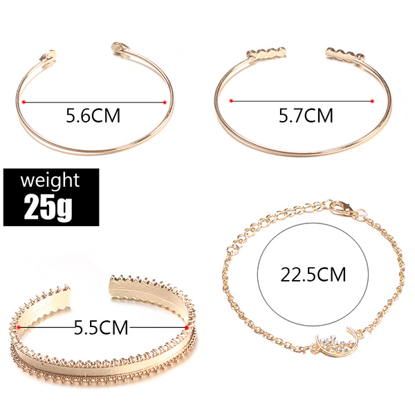 This bracelet set comes with a classic yet stylish gold tone,including 4 pieces different bracelet,inlaid with rhinestone details,stylish and shinning. It can be a perfect gift for your friends and yourself.