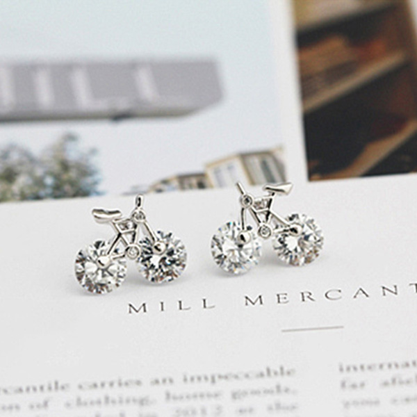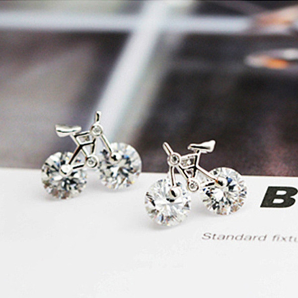 Fashion Rhinestone Inlaid Bicycle Shaped Stud Earrings