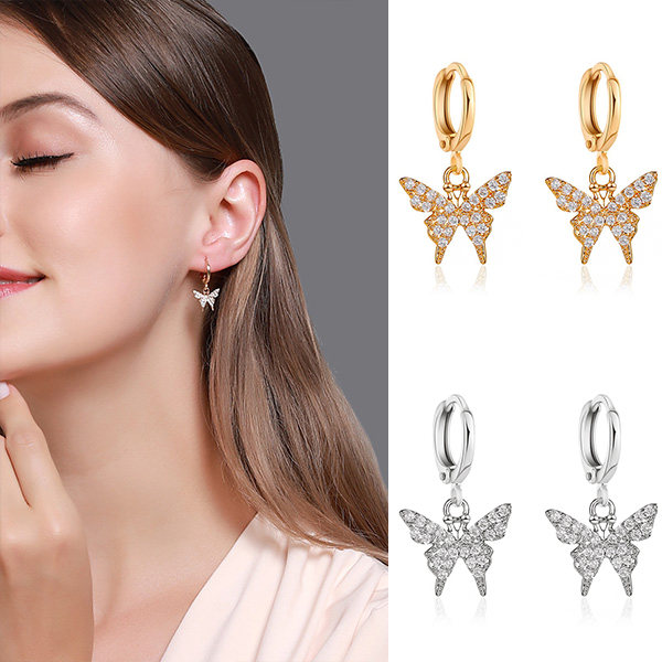 Add a dash of fresh and sweet vibes to your daily look with the help of this pair of earrings. The butterfly pendant and rhinestone details make it look so shinning and attractive. Finish a more delicate and charming appearance with these earrings to start your wonderful day.