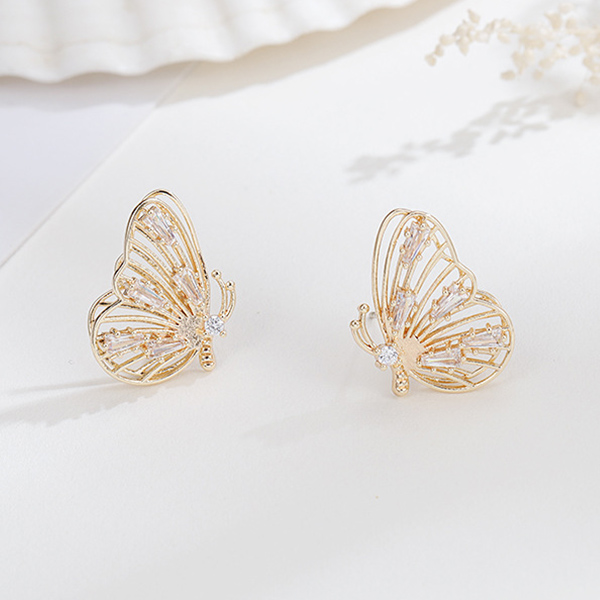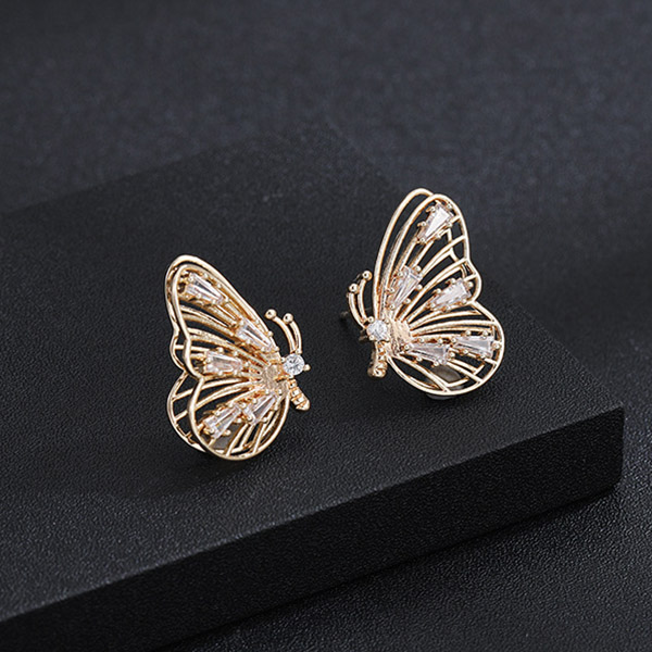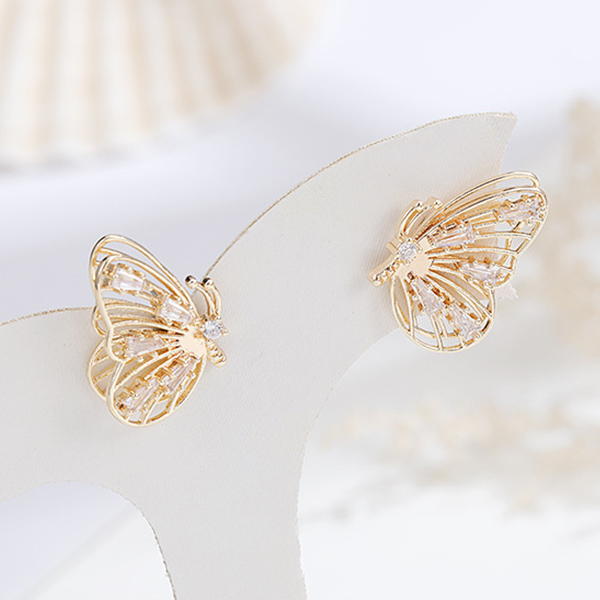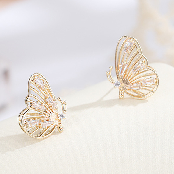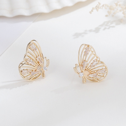 Hey,girls,you can make your appearance look more charming and vivid by wearing this pair of stud earrings. Butterfly shaped design,inlaid with rhinestone details,this pair of earrings can boost your entire charm.