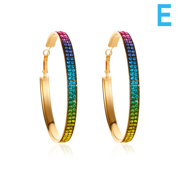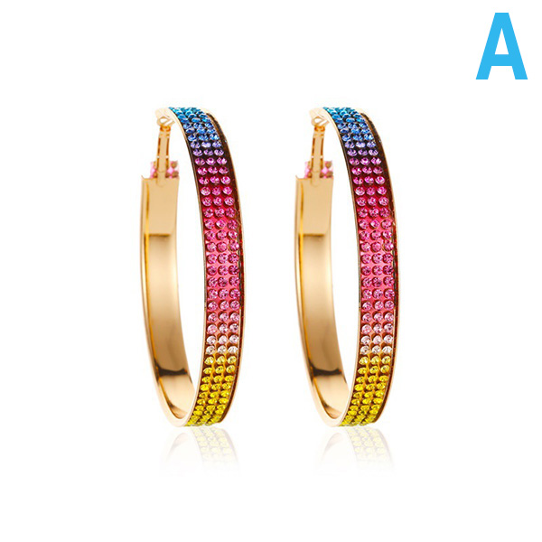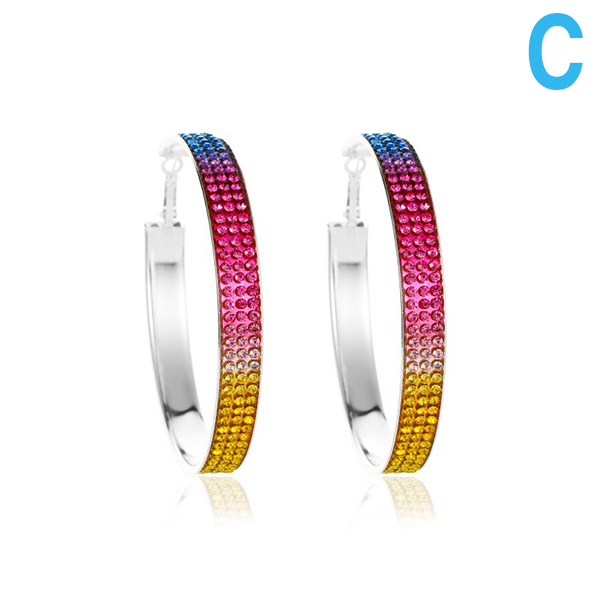 Fashion Rhinestone Inlaid Color Gradient Round Circle Shaped Earrings