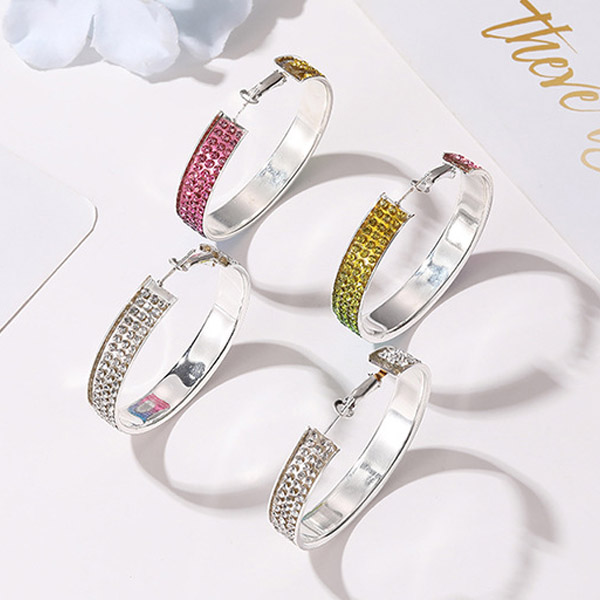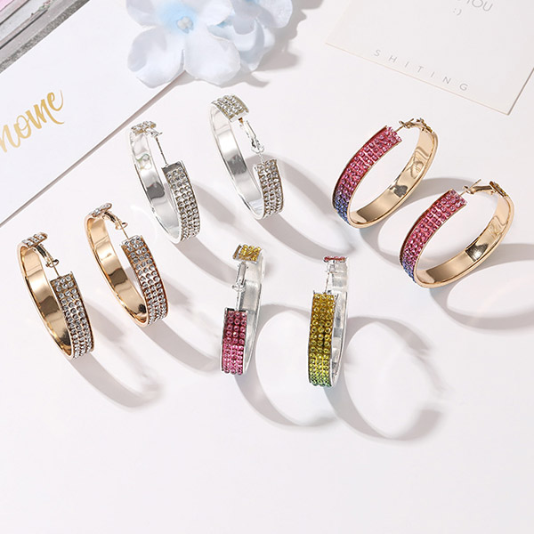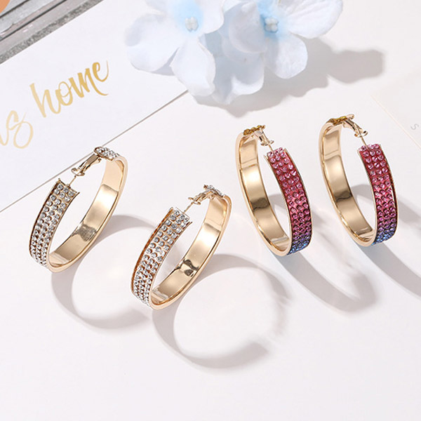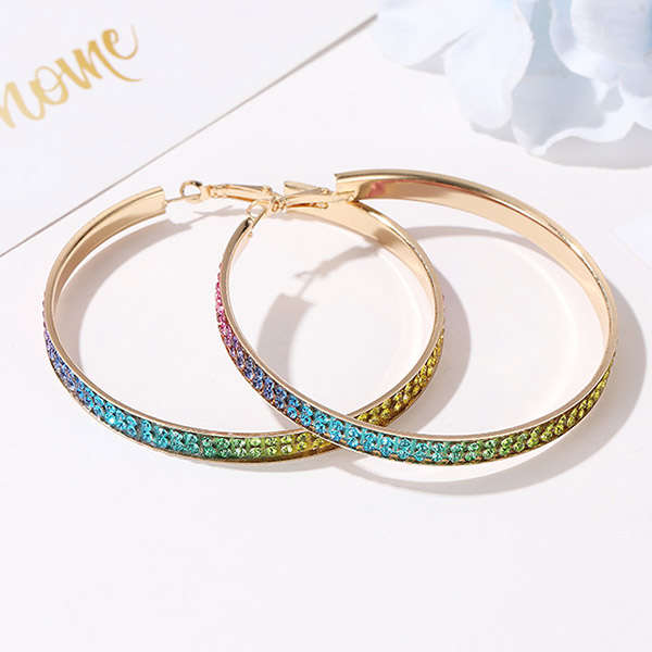 Finish a polish and charming look with the help of these earrings. Round circle shaped design makes it look simple yet stylish,while the rhinestone inlaid details and color gradient design will make it look more shinning and attractive. You can boost your charm with these pieces.