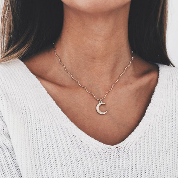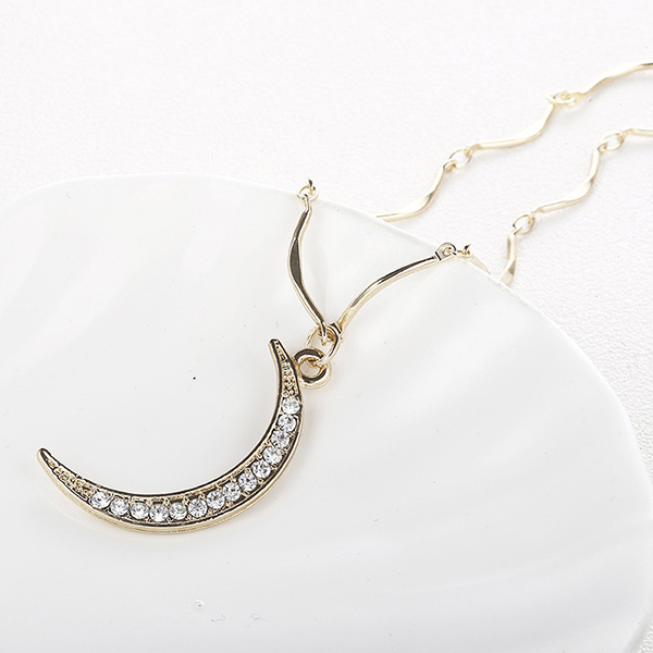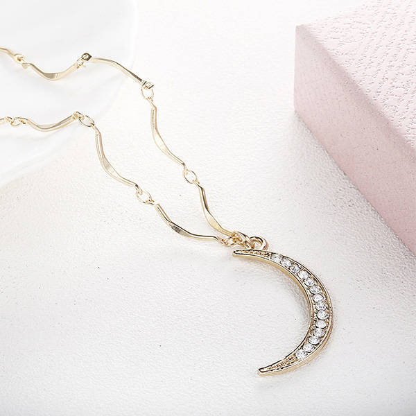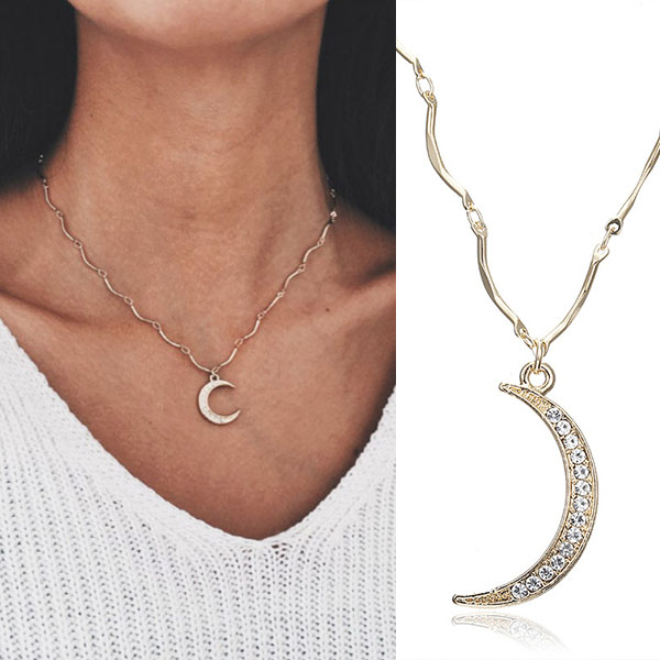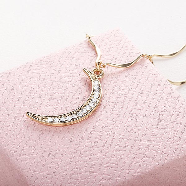 This necklace comes with a classic yet stylish gold tone,decorated with a crescent pendant and inlaid with rhinestone details,which can embellish your neck as well as boost your entire charm.