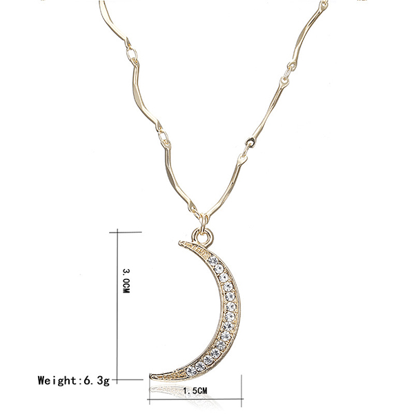 Fashion Rhinestone Inlaid Crescent Pendant Necklace